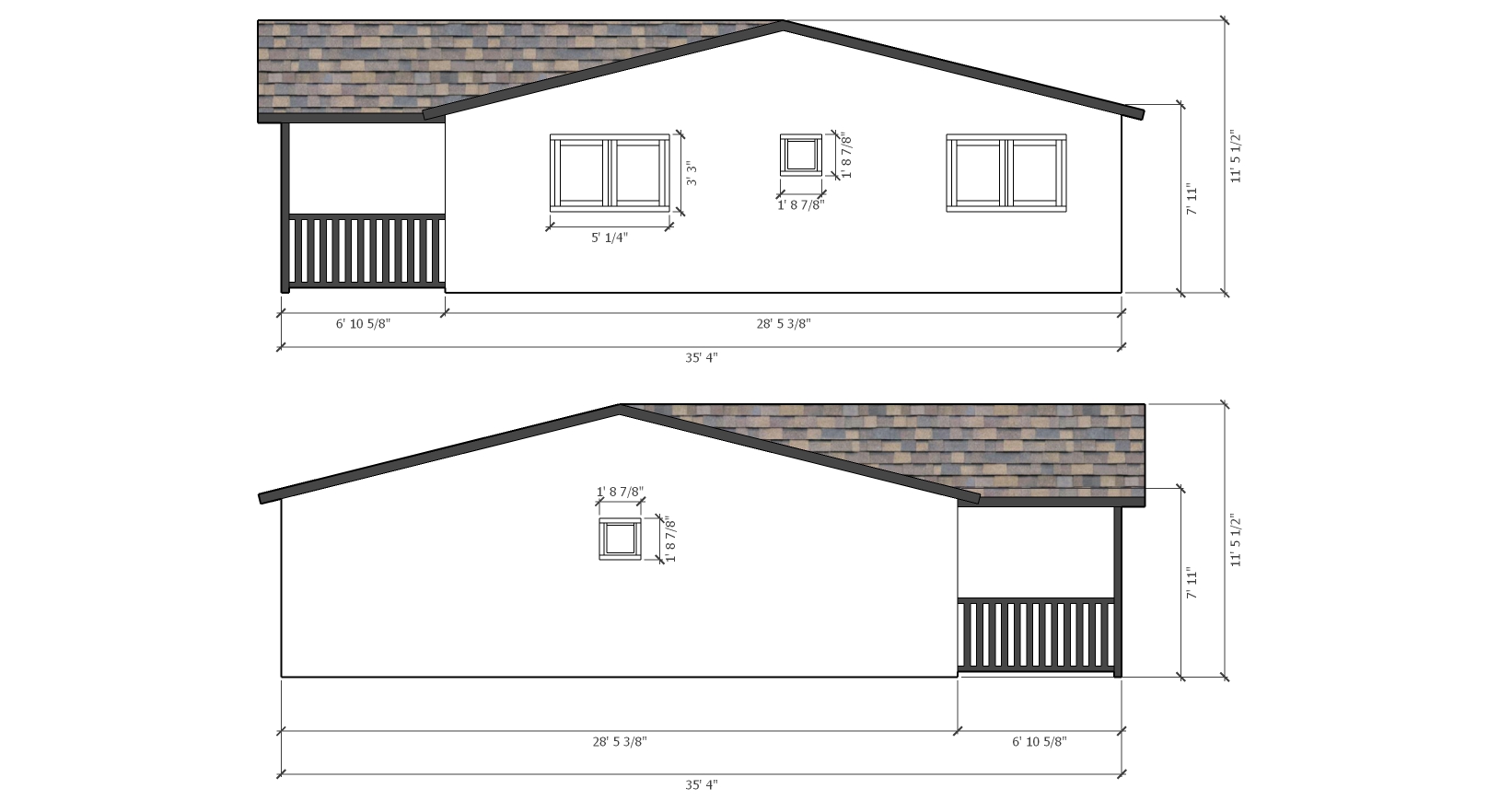 - roof pitch 3/12 (14 degrees)