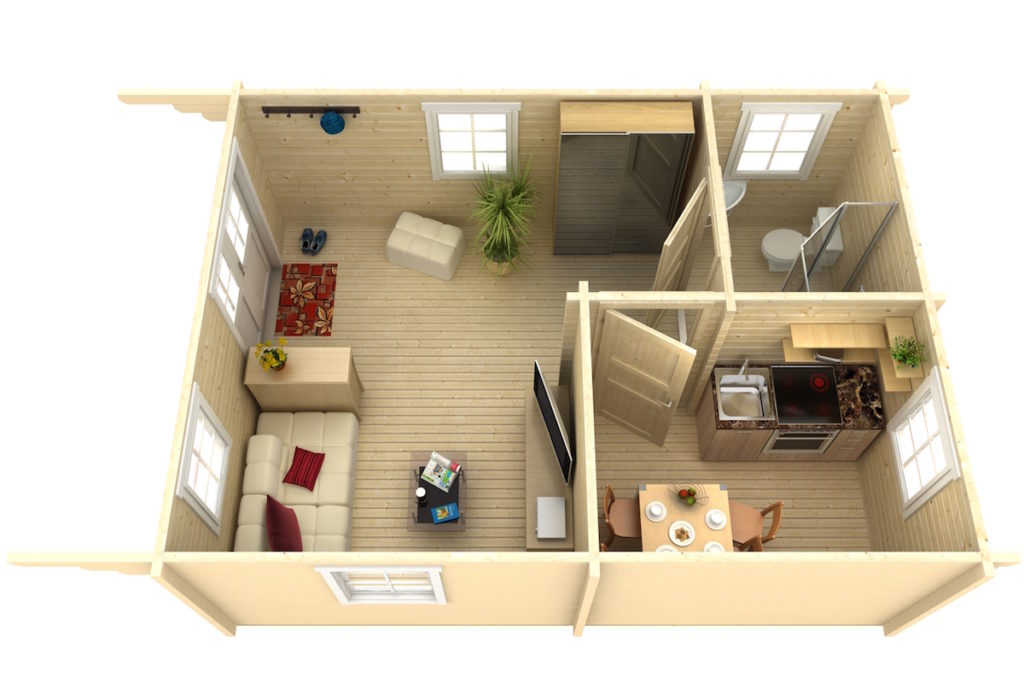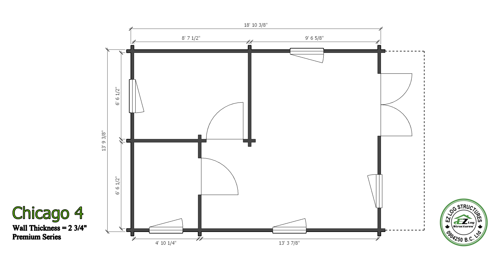 Contact Us >Chicago 4 model is a 3 room cabin or tiny home. This compact model can be modified or we can build to your plans. (sq footage is based the total footprint, living space could be less, see floor plans)