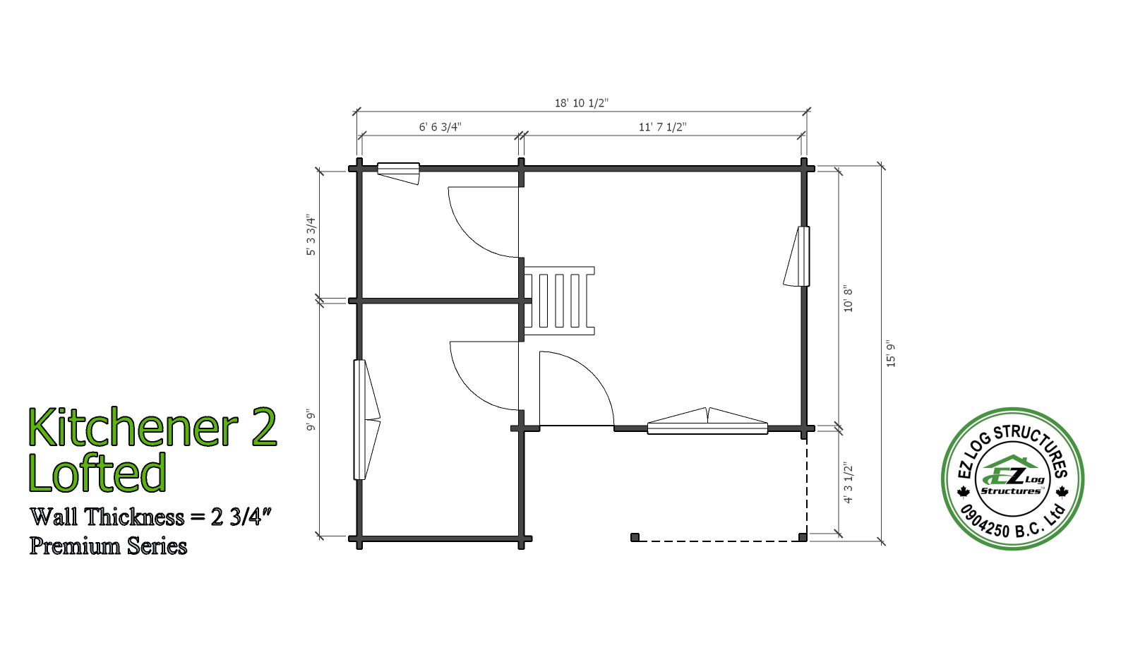 Contact Us >Kitchener 2 Lofted is a 1 bedroom, 1 bathroom model with a loft making it a great rental cabin, tiny home or ADU (Additional Dwelling Unit). The main living space has vaulted/cathedral ceilings and the loft is a great storage area, plus a covered front entry/deck to relax on. The sidewall height is 89″ to the underside of the loft floor and the loft floor to the peak is approximately 55″. (sq footage is based on the total footprint, living space could be less, see floor plans)