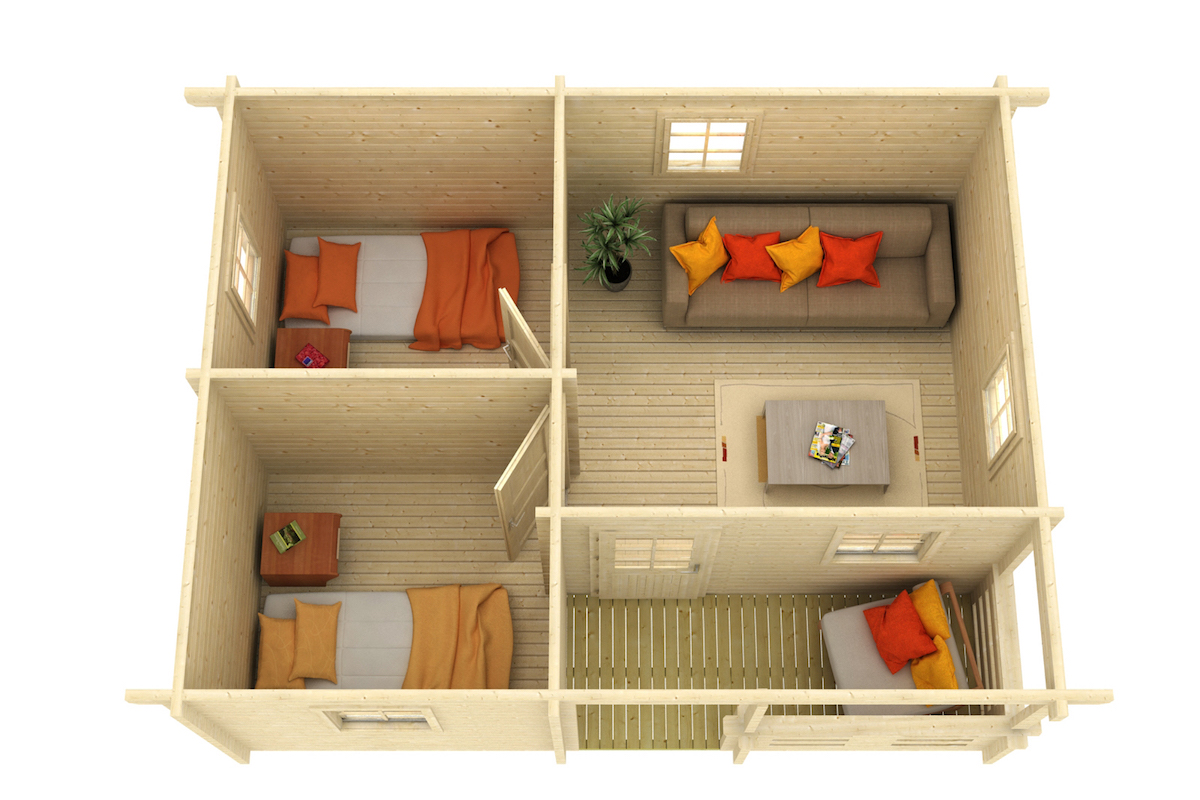 Contact Us >Lansing is tiny home or cabin with a covered deck. This model has 3 rooms and can be modified to your needs. (sq footage is based on the total footprint, living space could be less, see floor plans)