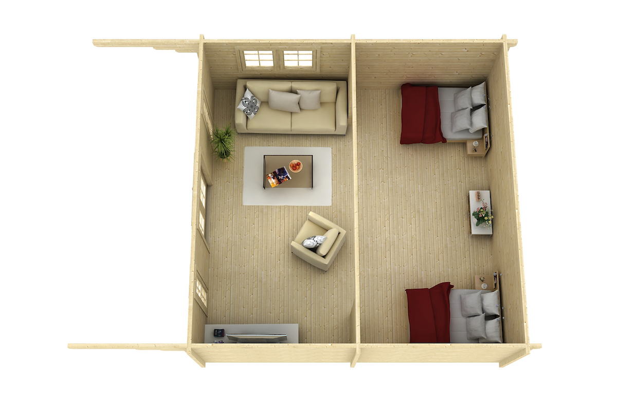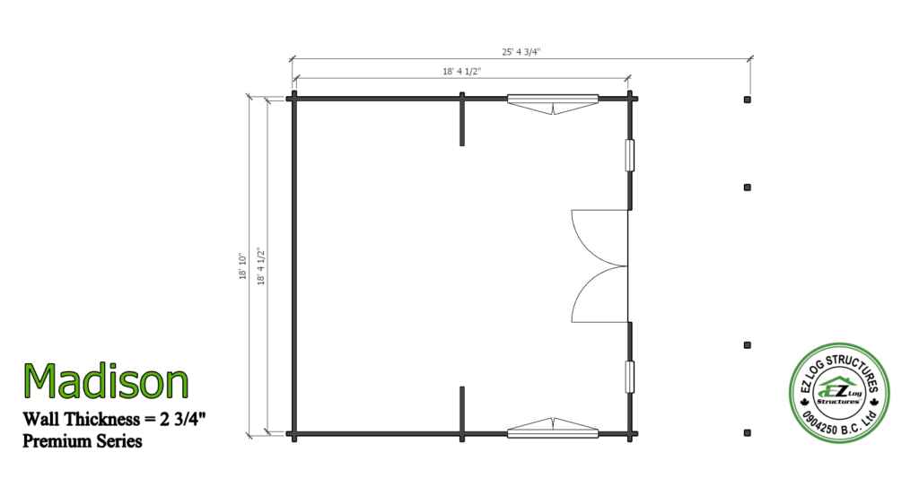 Contact Us >Madison is a one room cabin with a 78″ extended roof on the front. This model is ideal for an office, games room, study or just a place to get away. Like all models it can be customized to fit your personal needs. (sq footage is based on the total footprint, living space could be less, see floor plans)