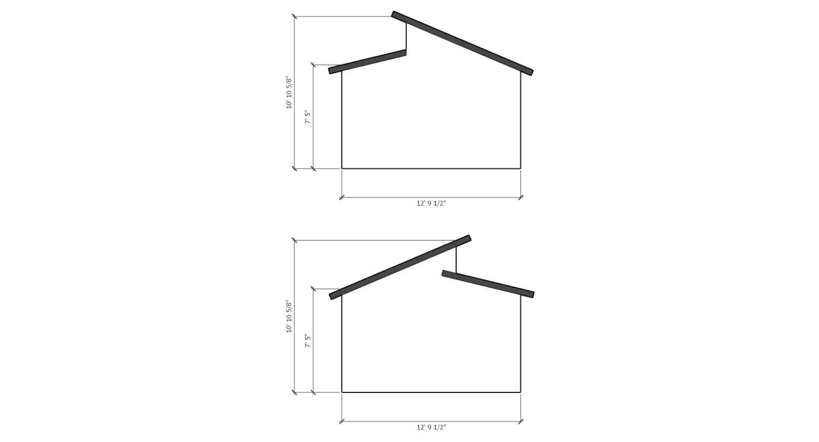 - 5/12 roof pitch (23 degrees)