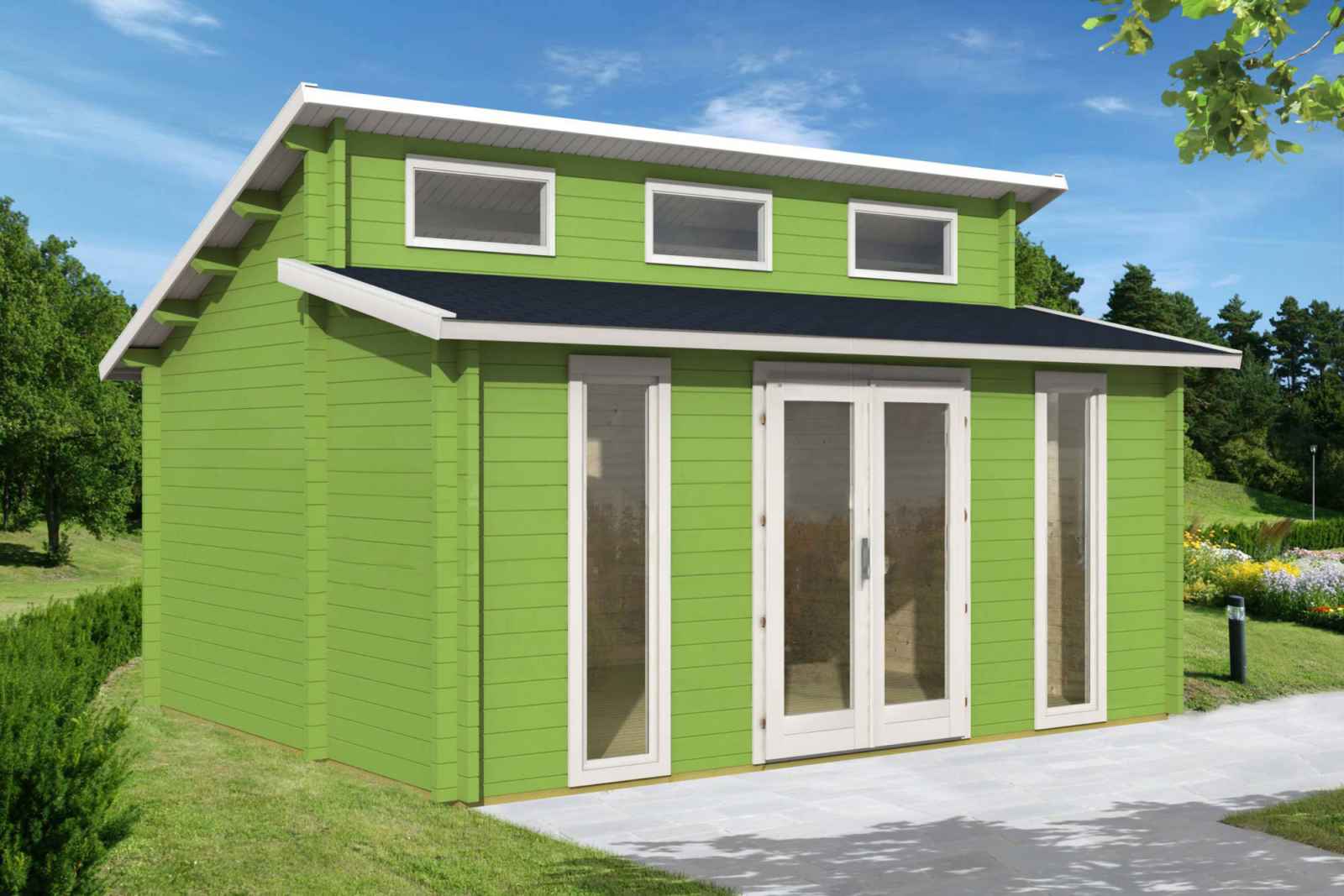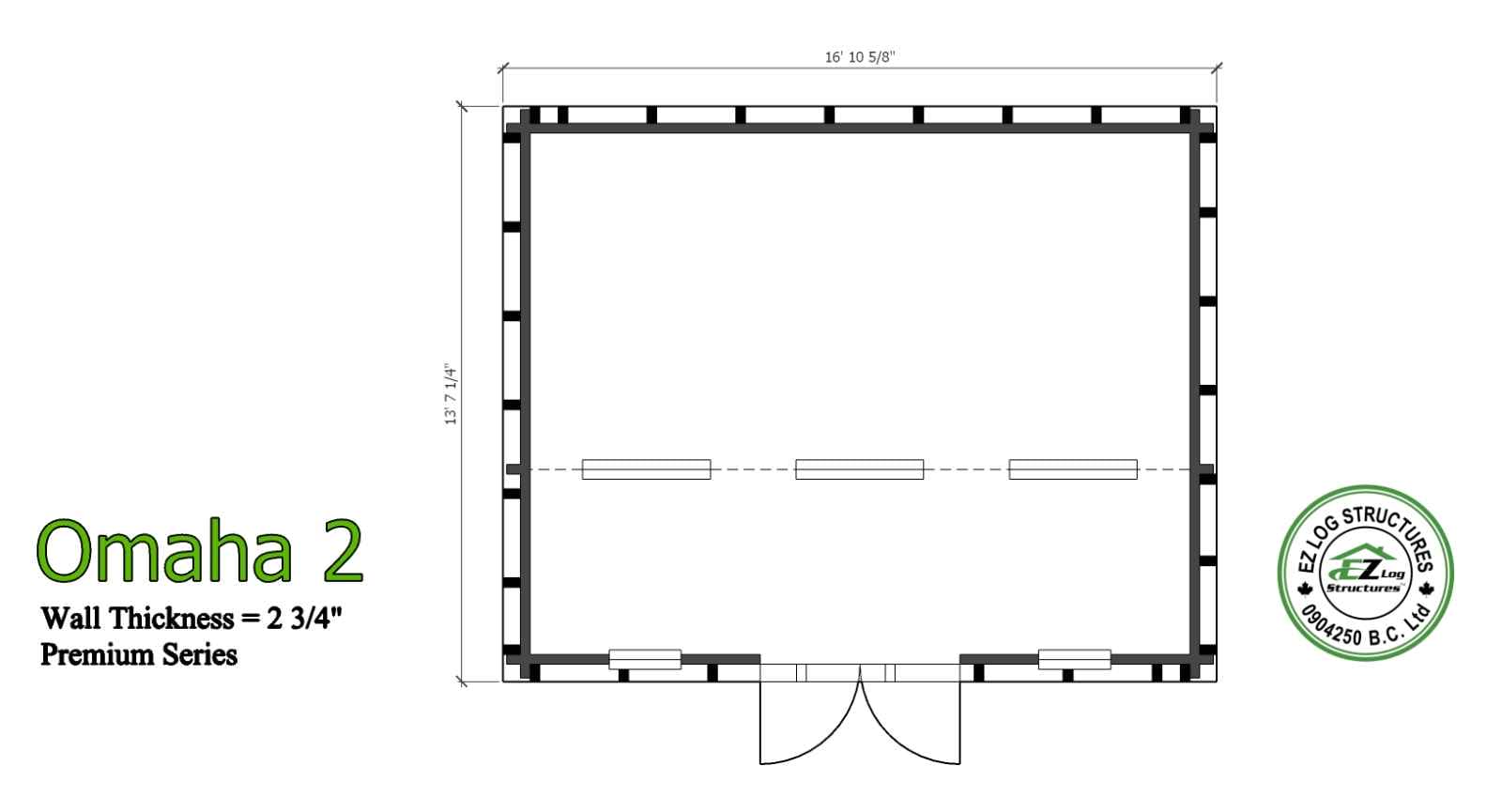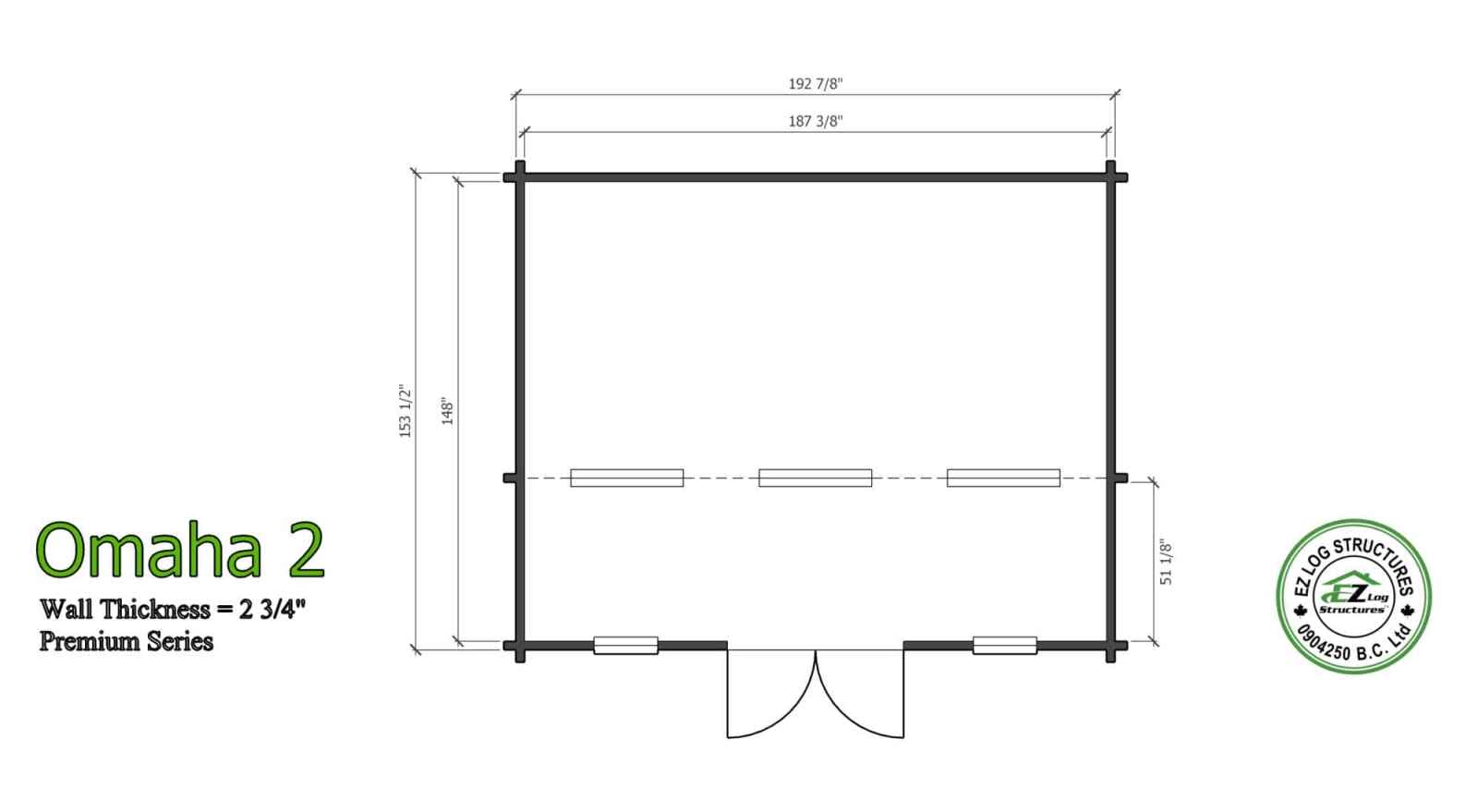 Omaha 2 is a 1 room cabin, ideal for the lake property, office or guest cabin in the yard. The main living space has vaulted/cathedral ceilings with a front wall height of 89″ and the center height is 139″. (sq footage is based on the total footprint, living space could be less, see floor plans)
