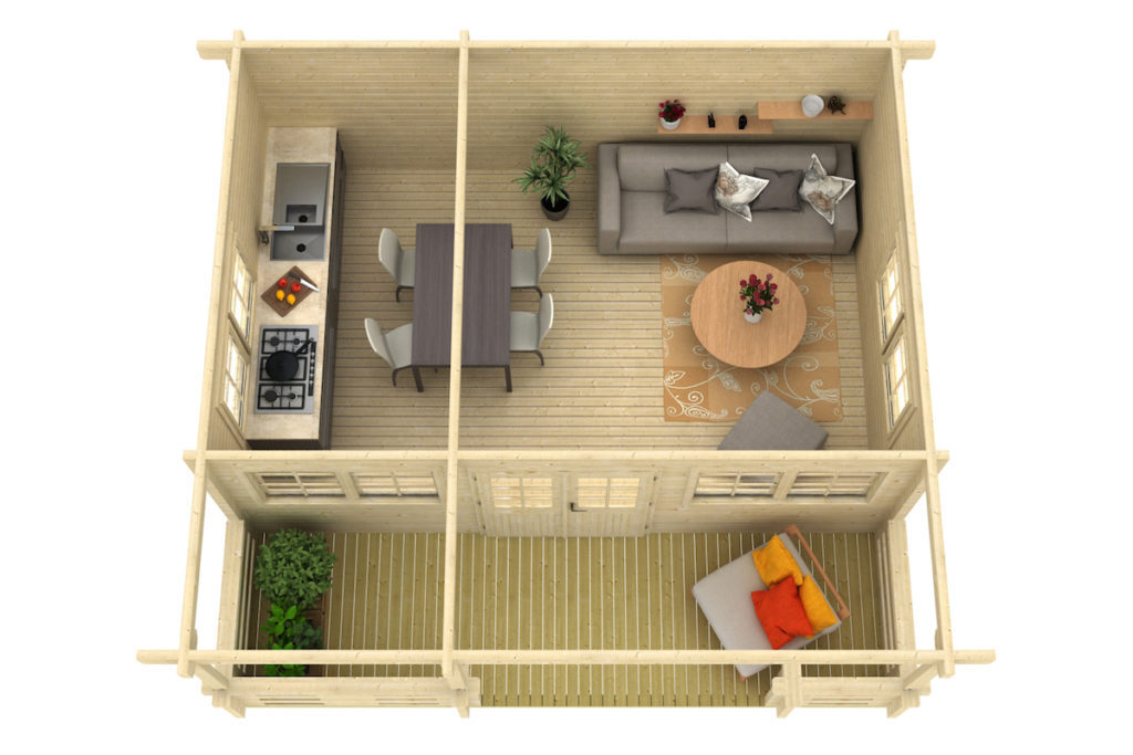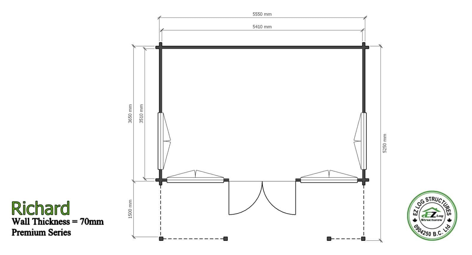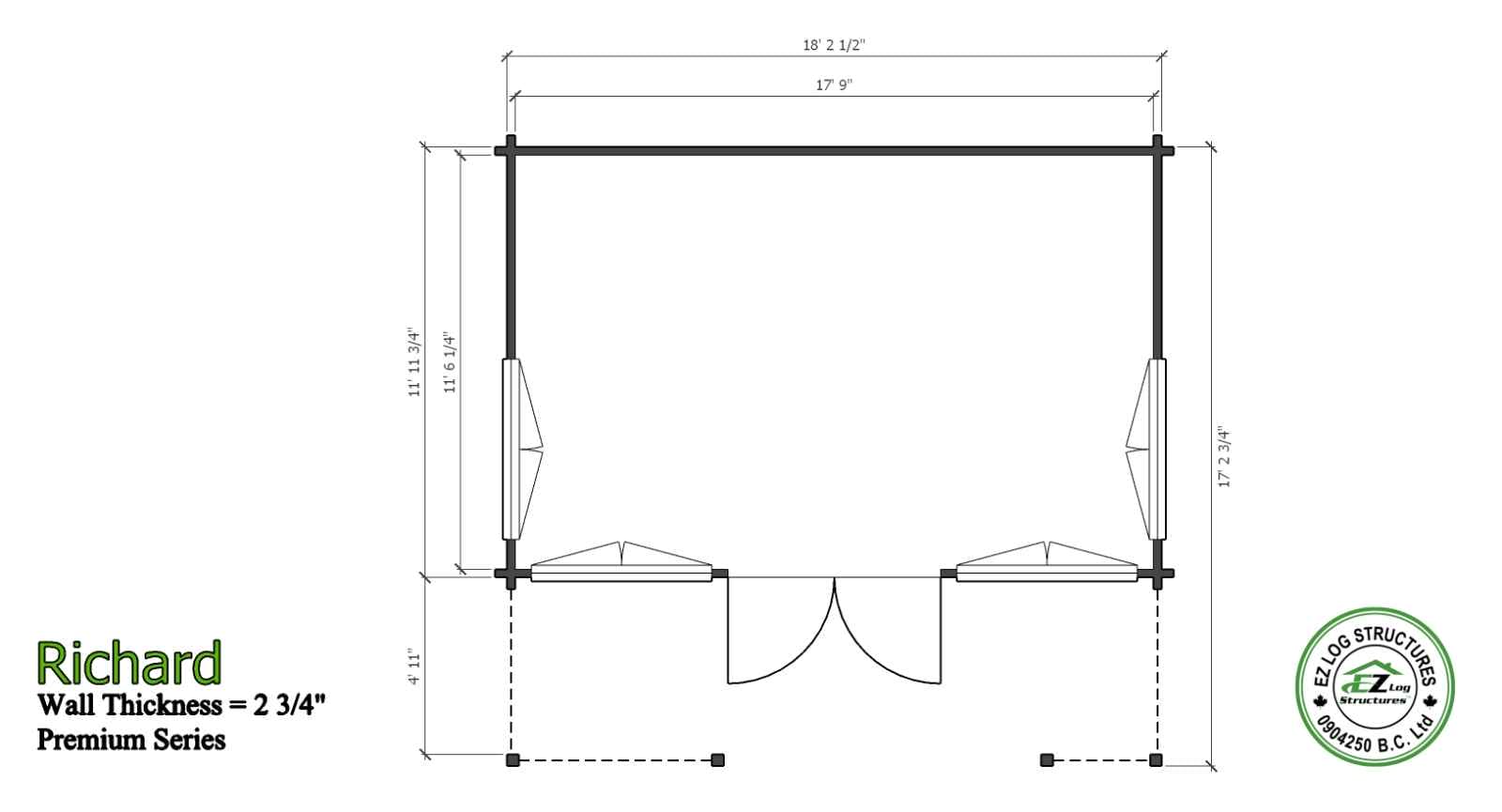 Richard is a great backyard office, cabin, she shed, man cave or guest cabin. The vaulted ceilings provide an open comforting interior. (sq footage is based on the total footprint, living space could be less, see floor plans)